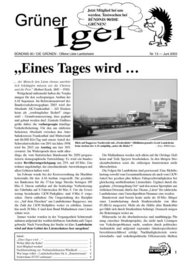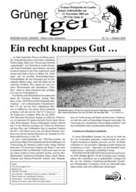 Der "Jahrhundertsommer" 2003 mit bisher nicht gekannten Rekordtemperaturen und Niedrigstwasserständen im Rhein hinterlässt seine Spuren auch im neuen Grünen Igel. Die Ausgabe Nr. 14 beleuchtet in diesem Zusammenhang kritisch die Forderung von Bürgerinitiativen nach einer flächendeckenden Grundwasserabsenkung in der Vorderpfalz. Weitere Themen: Das Ringen im Gemeinderat um die Ausweisung von Vorranggebieten für Windenergie in Lambsheim, das schleppende Engagement für Photovoltaik auf Lambsheimer Dächern und die Information über gestiegene Förderzuschüsse für den Einbau von Solarwärmeanlagen.